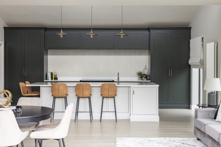 Laraghcon, Co. Dublin Designed for a contemporary family home, this kitchen pairs clean-lined cabinetry with warm, tactile brass accents for a look that’s both modern and inviting. Matt finishes and…